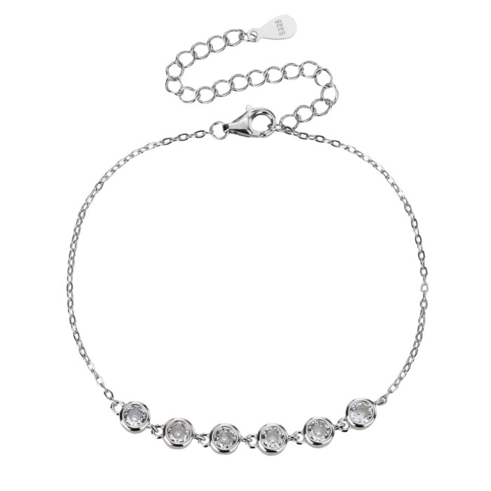 צמיד כסף 925 בעיצוב קלאסי ונשי, עם שורת אבני זירקון עגולות המשובצות בקפידה ומעניקות ברק אלגנטי ונוצץ.