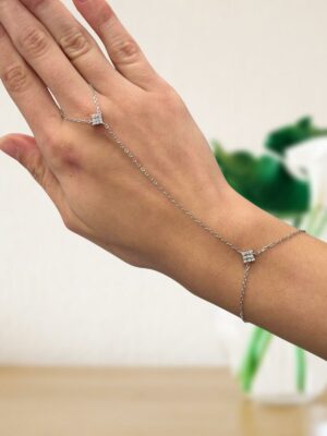 השרשרת הארוכה יוצרת קו אחד זורם בין היד לאצבע, כסמל לחיבור בין גוף לנשמה — בין יופי חיצוני לפנימי.
