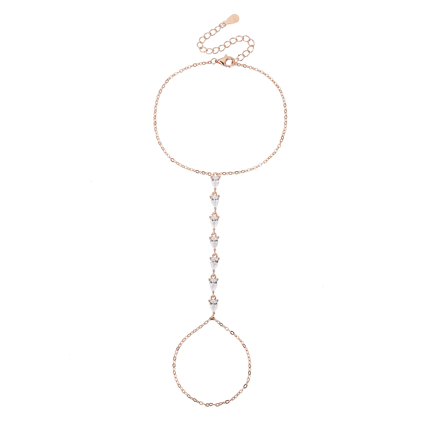 צמיד־טבעת בצבע רוז גולד , מעוטר בשורת אבני זירקון נוצצות שמאירות כל תנועה באור רך ועדין.