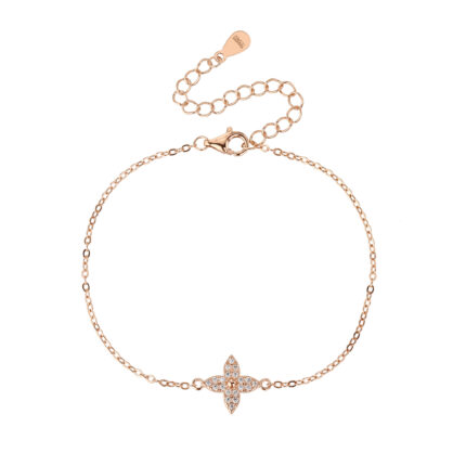 צמיד עדין ומיוחד בצבע רוז גולד, עם שילוב מקסים של צורות פרחוניות קטנות ומרוקעות ומוטיבים מלאים באבני זרקון נוצצות. עיצוב רך ונשי שמוסיף חיוניות ואלגנטיות לכל הופעה, מתאים ללבישה יומיומית וגם לאירועים חגיגיים. מתנה מושלמת לנשים שאוהבות פרטים עדינים עם נגיעה של זוהר.