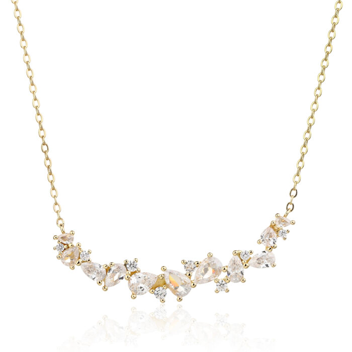 שרשרת כסף 925 בצבע זהב יוקרתית בעיצוב אלגנטי, עם תליון משובץ באבני זירקון בגדלים שונים היוצרים קו עדין של ברק ורוך.