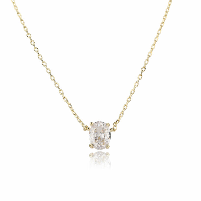 שרשרת כסף 925 בצבע זהב ובעיצוב אלגנטי ונקי, עם תליון יחיד המשובץ באבן זירקון יוקרתית ומנצנצת.