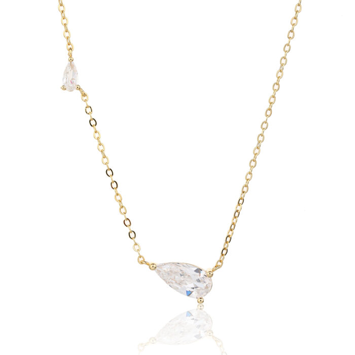 שרשרת כסף 925 בצבע זהב ובעיצוב עדין ואלגנטי, עם תליון טיפה משובץ באבן זירקון נוצצת שמוסיפה ברק רך ונשי.
