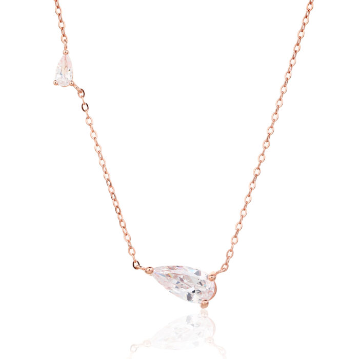 שרשרת כסף 925 בצבע רוז גולד ובעיצוב עדין ואלגנטי, עם תליון טיפה משובץ באבן זירקון נוצצת שמוסיפה ברק רך ונשי.
