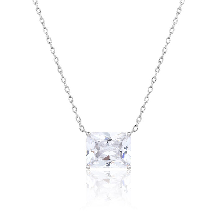שרשרת כסף 925 בעיצוב נקי ואלגנטי, עם תליון אבן זירקון מרובעת ומרשימה בגימור יוקרתי.