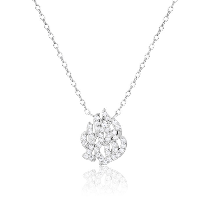 שרשרת כסף 925 בעיצוב מרהיב, עם תליון בצורת האש שלי המשובץ באבני זירקון נוצצות שמוסיפות ברק ועדינות.