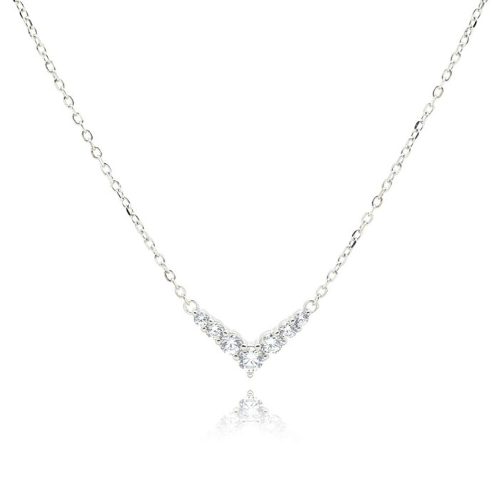 שרשרת כסף 925 בעיצוב נקי ואלגנטי, עם תליון משובץ באבני זירקון נוצצות המפזרות אור בכל תנועה.