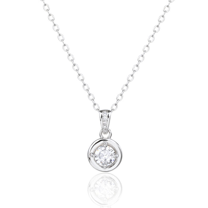 שרשרת כסף 925 בעיצוב נקי ואלגנטי, עם תליון עגול משובץ באבן זירקון נוצצת במרכז, שמוסיפה אור וקסם לכל הופעה.