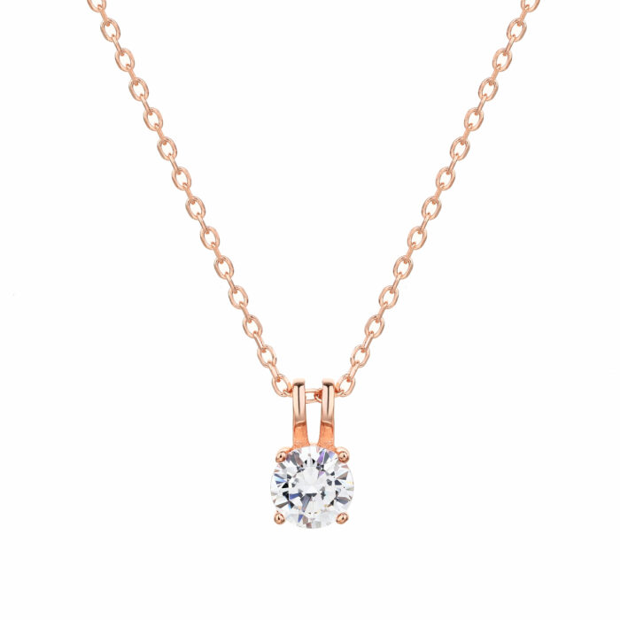 שרשרת כסף 925 בצבע רוז גולד ובעיצוב על-זמני, עם תליון בודד משובץ באבן זירקון נוצצת שמפיצה אור עדין ויוקרה טבעית.