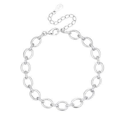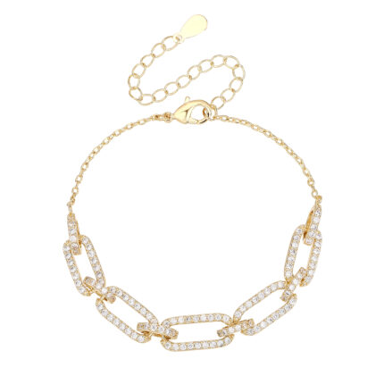 צמיד עדין ונשי עשוי כסף סטרלינג 925, עם אבני קריסטל שקופות בעיצוב ייחודי ומעודן.