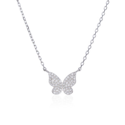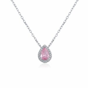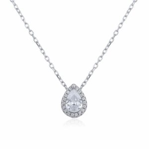 שרשרת כסף עדינה עם תליון בצורת טיפה, משובץ באבן שקופה נוצצת ומוקפת בזירקונים קטנים. עיצוב קלאסי ויוקרתי שמוסיף זוהר לכל הופעה.