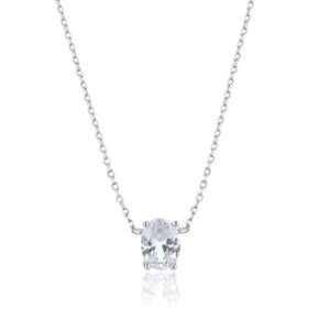 שרשרת כסף 925 בעיצוב אלגנטי ונקי, עם תליון יחיד המשובץ באבן זירקון יוקרתית ומנצנצת.