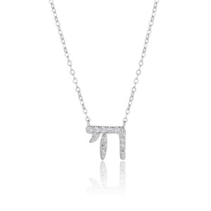שרשרת כסף 925 בעיצוב עדין ונוצץ, עם תליון מהמם בצורת המילה "חַי", המשובץ באבני זירקון יוקרתיות שמפיצות אור ועדינות בכל תנועה.